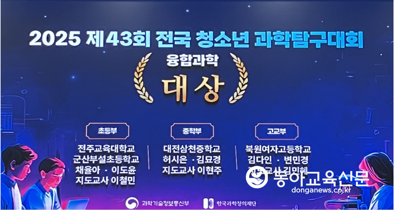 [종합>사회] 대전과학교육, 전국청소년과학탐구대회 4년 연속 전국 1위 2025-11-25 22:17:20 |